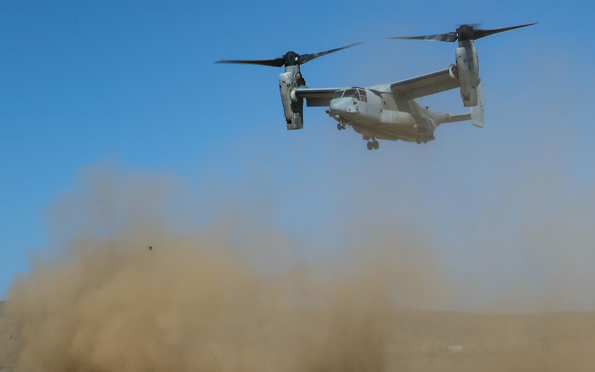 Las aeronaves MV-22 Osprey, operados por el Cuerpo de Marines de EEUU, la Armada y la Fuerza Aérea, son utilizadas para el transporte de tropas, equipos y suministros desde barcos y bases terrestres para apoyar combates.