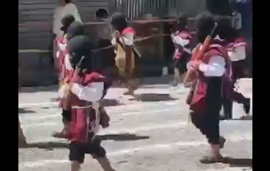 La Defensoría del Pueblo expresó su preocupación por el video en que se observa a niños desfilando en encapuchados y con armas de juguete, por lo cual indicó que está indagando a los responsables para tomar acciones.