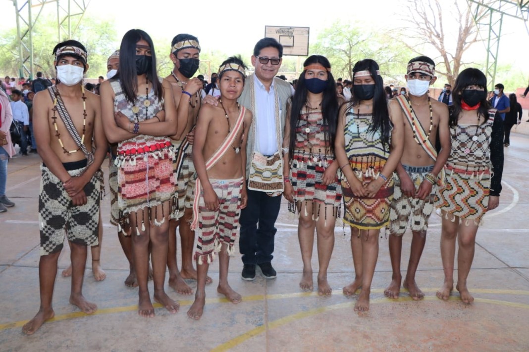 Niñas, niños y jóvenes indígenas, junto a sus autoridades, recibieron con sonrisas y sus mejores vestimentas autóctonas al ministro de Educación, Edgar Pary Chambi, quien llegó hasta la Unidad Educativa Misión Sueca, ubicada en la comunidad Capirendita, municipio tarijeño de Villamontes, para inaugurar el calendario escolar regionalizado.