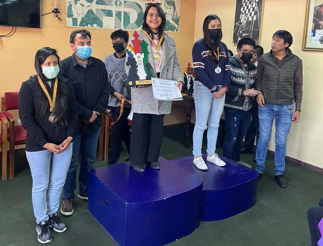 La escoltaron en el podio la paceña Gaia Enríquez y la Candidata a Maestra (CM) de El Alto, Soledad Coro (las dos con 4).