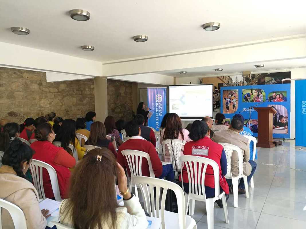 También participaron como expositores representantes del programa de Aldeas Infantiles SOS y SEDEGES de la ciudad de Potosí, quienes dieron a conocer su experiencia de trabajo en la implementación del Programa de Guarda en Familia que ejecutan en una alianza estratégica de trabajo para restituir el derecho a vivir en familia.