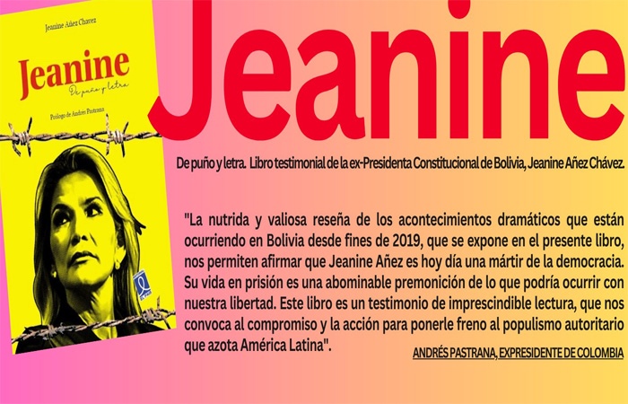 Sostuvo que ese libro le permite que Jeanine Añez “es hoy día una mártir de la democracia” y asegura que su vida en prisión es una abominable premonición de lo que podría ocurrir con nuestra libertad”.