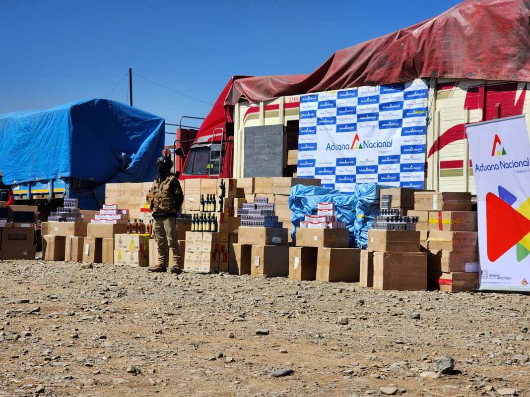 Personal de la Aduana Nacional comisó mercancía de contrabando valorada en más de Bs 354.000 en operativos en las trancas de Achica Arriba y Guaqui del departamento de La Paz.
