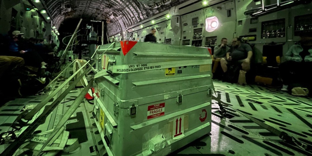 Al día siguiente de arribado en el desierto de Utah desde el espacio, el material cósmico fue trasladado en un operativo de máxima seguridad en un avión C-17 de la Fuerza Aérea de EEUU, que aterrizó en Ellington Field. Desde allí, fueron transferidas al Centro Espacial Johnson de la Administración Nacional de Aeronáutica y el Espacio (NASA).