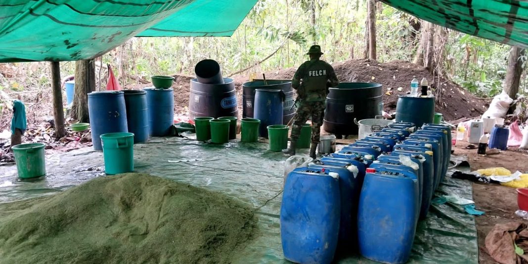 Los efectivos antidroga encontraron un total de 4.550 litros de cocaína líquida equivalente a 172.087 kilogramos de pasta base de cocaína.