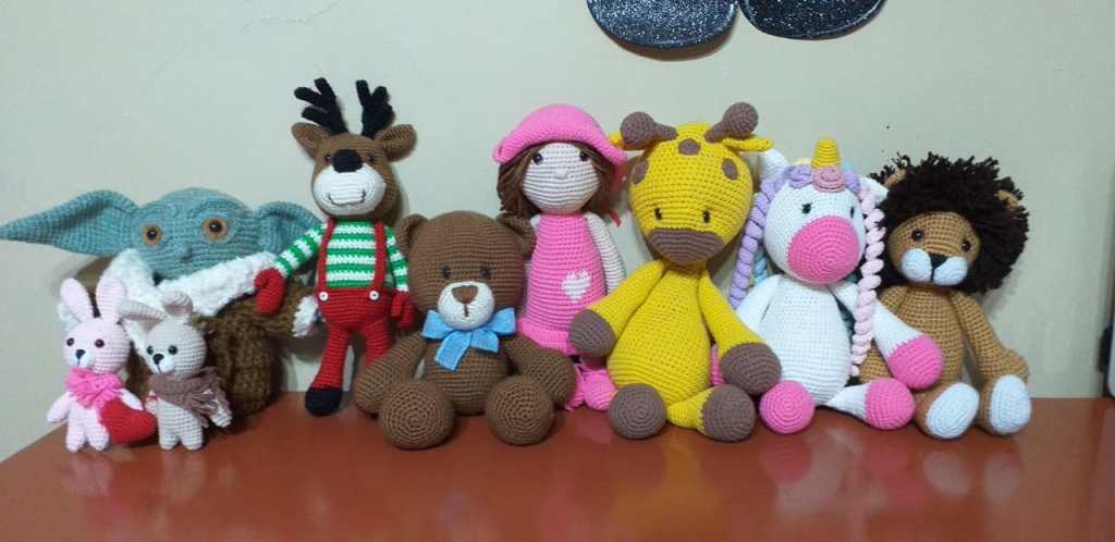 Sara Salazar, madre y apasionada tejedora, inició su trayectoria creando tapetes hasta que descubrió la magia de los amigurumis. Inspirada por sus hijos, quienes fueron la musa detrás de sus creaciones, decidió aventurarse en el mundo de los muñecos tejidos. Empezó haciendo prendas para sus pequeños, pero pronto se enamoró de la idea de crear adorables amigurumis.