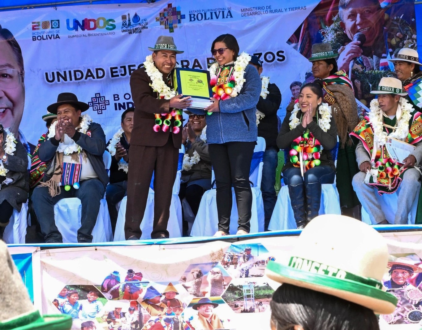 “Con una inversión de más de Bs 2,8 millones, hoy entregamos, a través del Ministerio de Desarrollo Rural y Tierras, pozos con sistemas de agua subterránea en favor de ocho comunidades del municipio de Totora, en Oruro”, destacó en un post en sus cuentas en redes sociales.