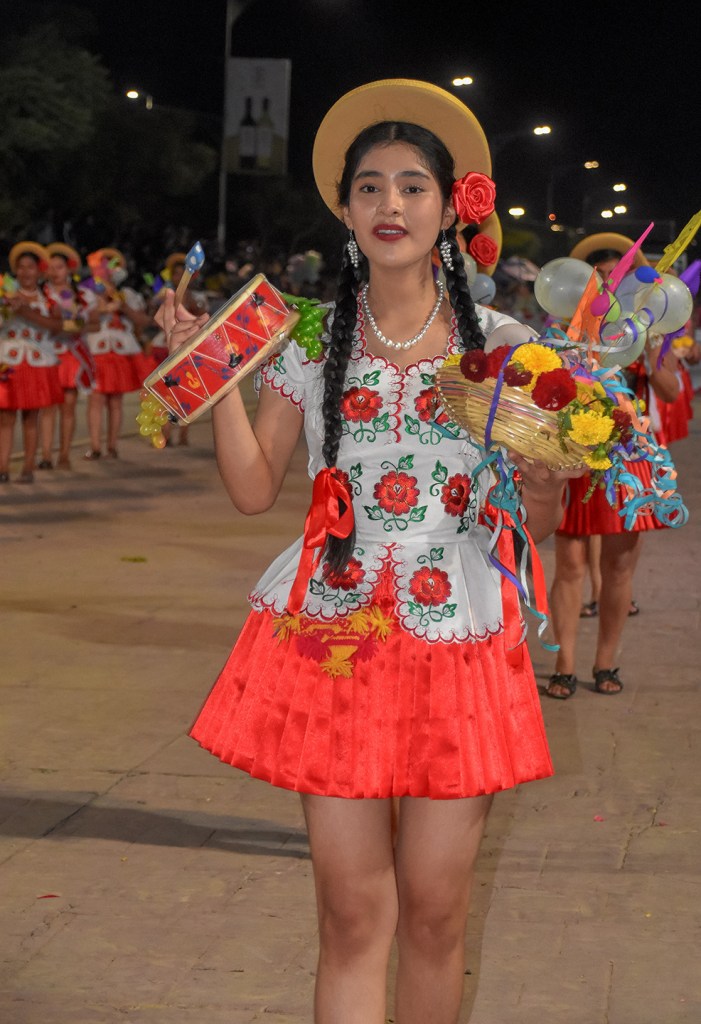 En la avenida Integración, durante la entrada de Comadres, las calles se llenaron de color y alegría con la presencia de mujeres ataviadas con hermosos trajes típicos, desplegando elegancia y gracia en cada paso. Las fotografías tomadas por el Gobierno Municipal capturan la esencia de esta celebración, resaltando la diversidad y la riqueza cultural de Tarija.