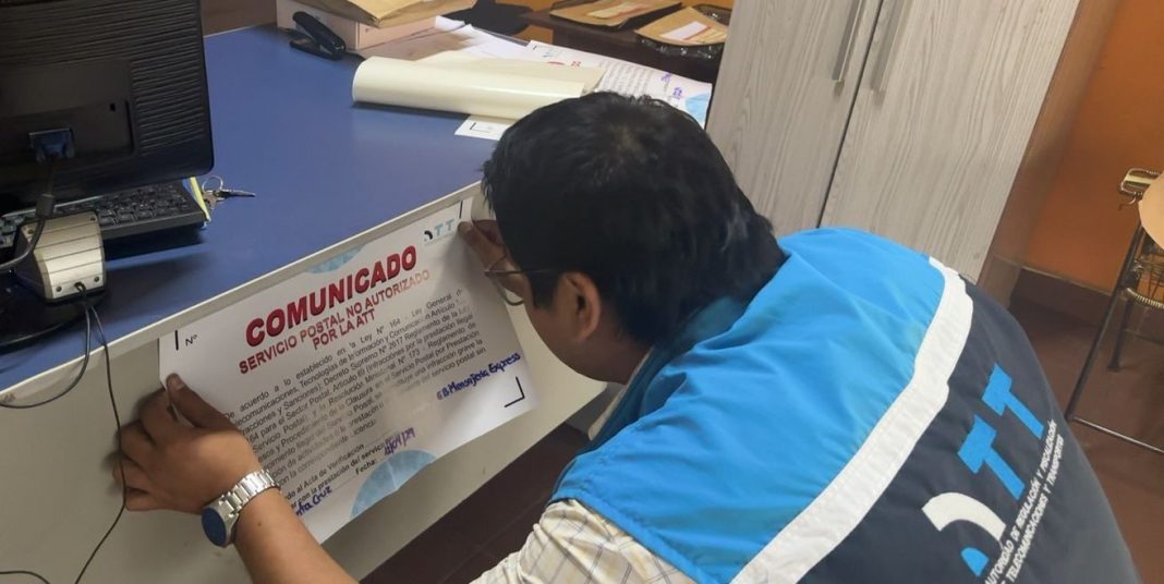 Según un reporte institucional, en un operativo de fiscalización la pasada semana, la ATT verificó la presunta prestación ilegal del servicio postal por parte de la empresa EB Mensajería Express S.R.L, instalada en la avenida Escuadrón Velasco, de la ciudad de Santa Cruz de la Sierra.