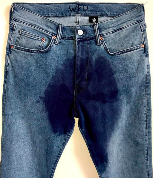 Diseñadores anteriores han trabajado temas similares, incorporando fluidos corporales a sus diseños. (Instagram: WetPantsDenim)