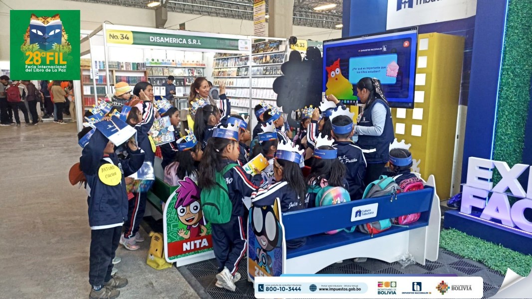 El Servicio de Impuestos Nacionales (SIN) invita a la población a visitar su stand en la 28ª Feria Internacional del Libro (FIL) de La Paz, donde mediante un sistema holográfico se muestra información sobre el Sistema de Facturación en Línea y de otros productos digitales, además de juegos interactivos para niños y adultos como la “Jikiña Tributaria”.