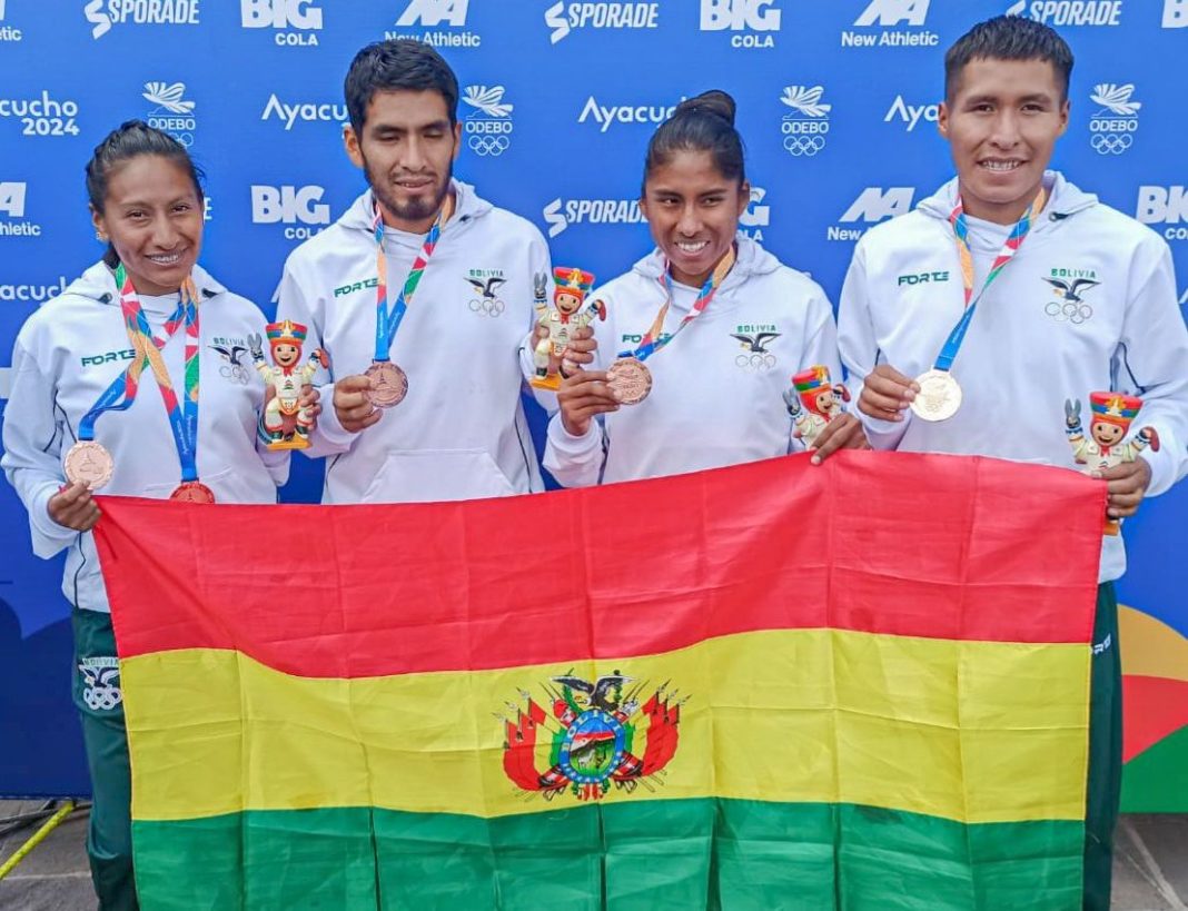 Asimismo, los atletas David Ninavia, Gabriela Mamani, Jhoselin Yessica Camargo y Rubén Arando Quispe, obtuvieron medalla de bronce en una emocionante competencia de trabajo en equipo en la categoría Media Maratón por Relevos Mixta, registrando un tiempo oficial de 1h 23:34.