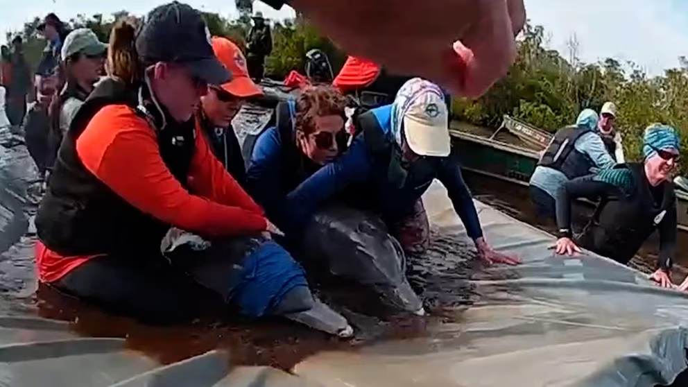 Cada delfín, de aproximadamente 2.7 metros de largo y un peso considerable, fue colocado en una plataforma flotante fabricada con materiales resistentes y recubierta de una superficie suave para evitar lesiones en la piel. Los rescatistas tuvieron que tirar manualmente de las plataformas a lo largo de más de 270 metros de terreno fangoso y manglares densos, enfrentándose a condiciones que requerían esfuerzo físico extremo. “La logística fue complicada: teníamos que asegurarnos de que los delfines estuvieran seguros durante todo el proceso y que el equipo pudiera maniobrar sin causarles daño”, señaló un portavoz de la LCSO.