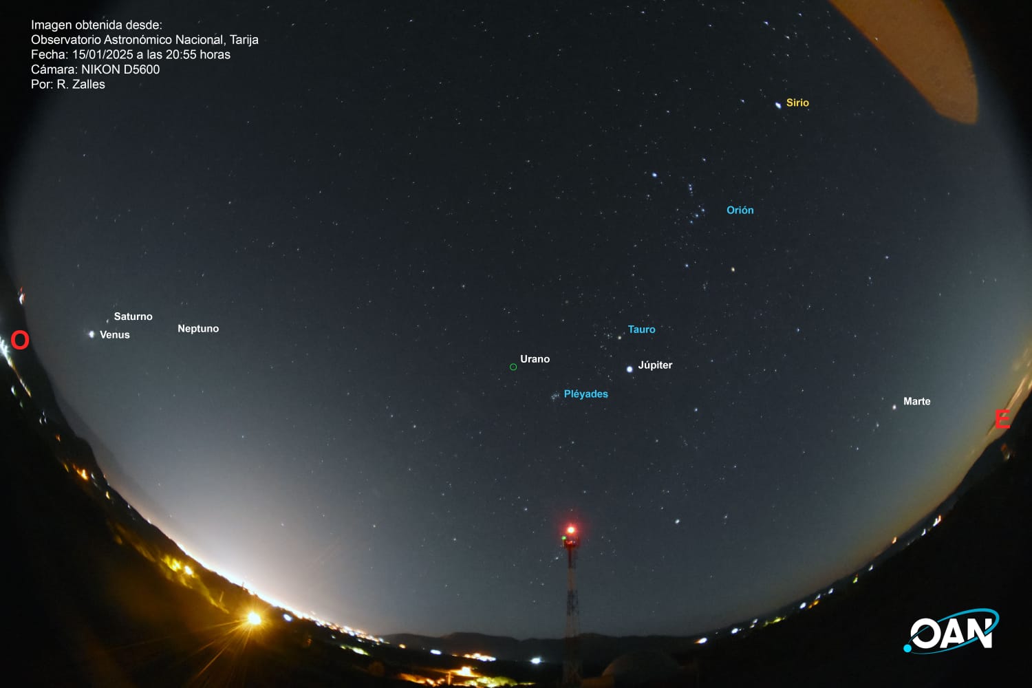 El año 2025 comenzó con un espectáculo astronómico esperado por aficionados y expertos: la alineación planetaria. La noche despejada del pasado 15 de enero permitió a los tarijeños disfrutar de este fenómeno único, observando a simple vista a Marte, Júpiter, Saturno y Venus, además de registrarlos fotográficamente. Aunque Urano también formó parte del evento, su baja luminosidad lo hizo visible únicamente con instrumentos especializados, mientras que Neptuno quedó fuera del alcance de las cámaras por su brillo extremadamente débil.