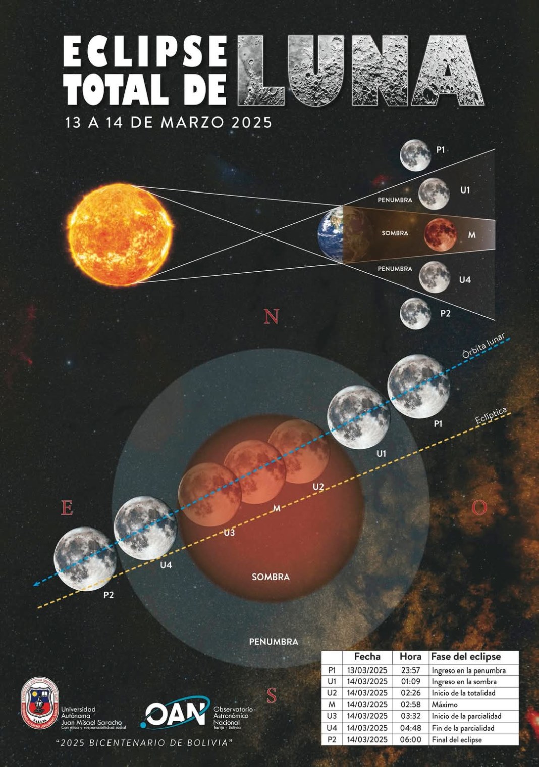 - 01:09 horas (14 de marzo): La Luna ingresa a la zona de sombra, comenzando la parcialidad del eclipse.