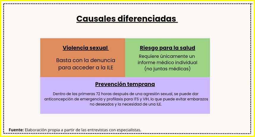 En el país, la ILE es un derecho legalmente establecido que permite a las mujeres interrumpir el embarazo bajo ciertas causales expresamente señaladas en el Código Penal (artículo 266). Cuando el embarazo representa un riesgo para la vida o la salud de la mujer, cuando el embarazo es producto de violación, incesto o abuso sexual y cuando hay malformaciones fetales graves.