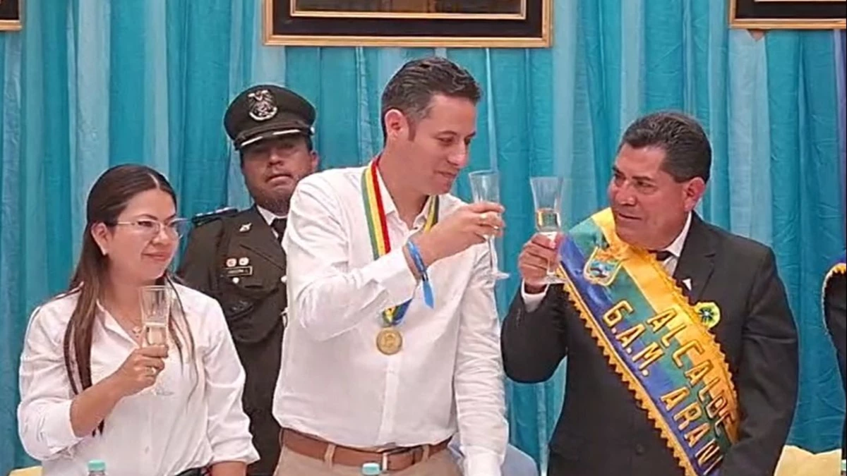 El vicepresidente Edmand Lara y su esposa, la diputada Diana Romero, retornaron a Bolivia y este lunes participaron de la Sesión de Honor por el aniversario del municipio de Arani, en Cochabamba.