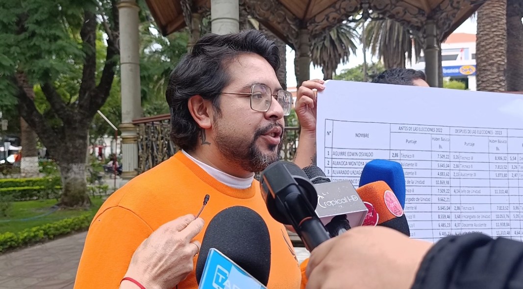 El universitario Luis Araoz denunció presuntos incrementos salariales desmedidos en favor de funcionarios que serían familiares del rector de la Universidad Autónoma Juan Misael Saracho, Eduardo Cortéz.